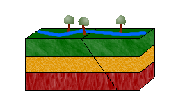 Dans le cas d'une faille normale, le bloc au dessus de la faille bouge vers le bas par rapport au bloc en dessous. Ce mouvement est créé par des forces en extension et provoque un allongement.