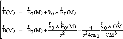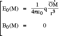 la charge q placée en 0, crée au point M les champs E et B suivants :
