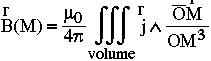 La Loi de Biot et Savart indique que le champ magnétique créé au point M par le courant I circulant dans le circuit (c) est donné par l'intégrale :