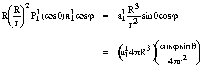 on obtient la position du paléo-pôle (l1,f1) à partir de la position du site (l,f) et du champ "enregistré" dans l'échantillon par les formules suivantes :